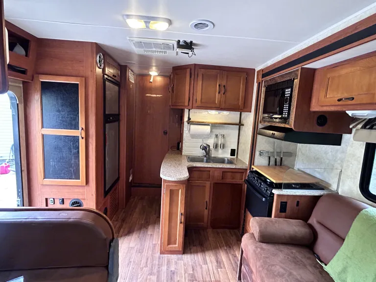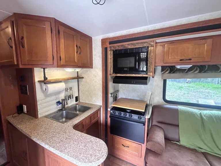 Our 29 foot RV is the perfect size to be easily maneuverable while providing plenty of space for your family’s Alaskan adventures. There’s one slide out in the living area for extra space. There are 6 seat belts and will comfortably sleep 5 adults and one child (or smaller adults)*No taking the RV on unpaved roads…. Unfortunately in Alaska that does include several roads such as the McCarthy road, and a large section of the Denali Hwy ect….No taking the RV on unpaved roads