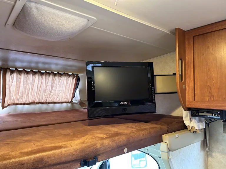 There is a queen bed in the back, a large cab over bed, couch coverts to a twin size bed and the dinette can convert to a bed although it is a bit shorter so would be perfect for a child.Qué incluye• Back up camera