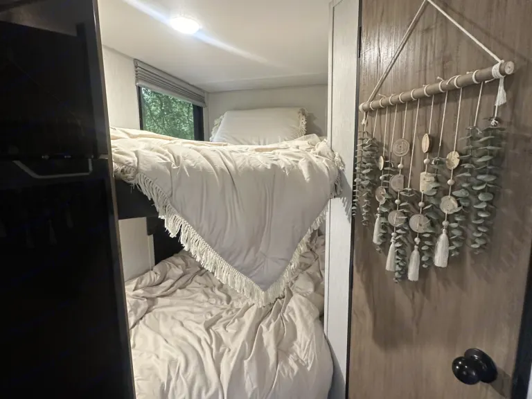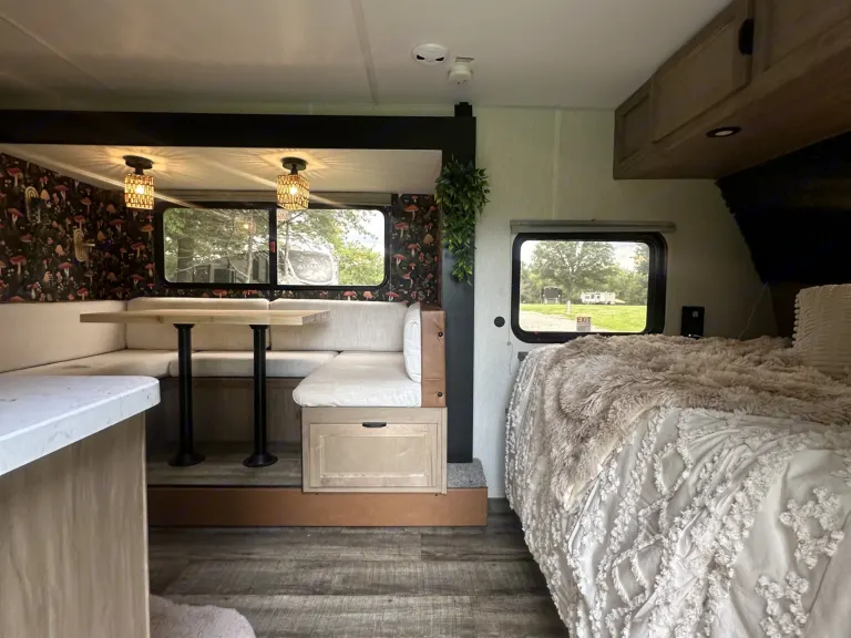 Experience stylish, pet-friendly off-grid glamping in this renovated Boho RV.