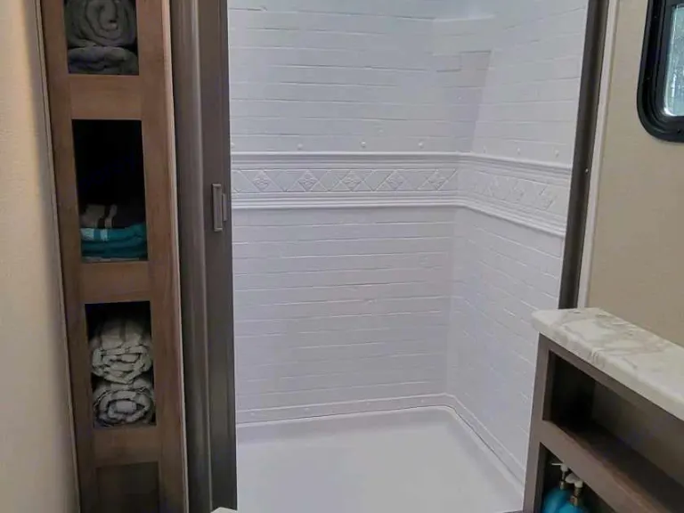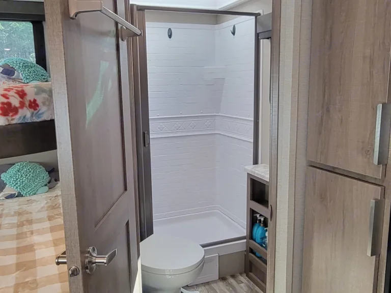 The bathroom in the 21BHE is designed for comfort and functionality. It includes a shower, a toilet, and a vanity with a sink, providing all the necessary amenities for your camping trips. The bathroom is well-ventilated and offers privacy, ensuring a comfortable experience.Exterior Features