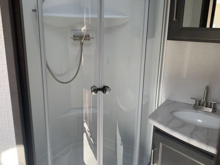 Camp in luxury with this beauty. Guests will enjoy a king-size bed, real wood cabinets, porcelain toilet with stand-up shower, and a reclining loveseat with heated seats and theatre-style lighting. Lightweight and easy to tow. Bright modern interior. Qué incluye• Trailer comes with comforter, sheets, 2 pillows, 2 towels, washcloths, dischcloth, dish towel, 4 pack toilet paper, roll of paper towels, 4 piece dish set, silverware, basic cooking utensils, 1 pot and 1 pan, coffee maker, 2 pack keurig coffee podOtros detalles importantesNo smoking in trailer. Pet free please. Not music festival friendly.