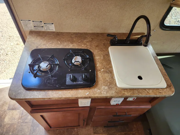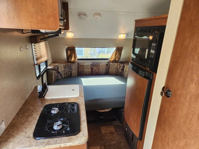 This trailer is great if you're looking for something easy to tow that can accommodate up to 3 adults comfortably, or maybe 2 adults and 2 kids. We recently installed new batteries that make our trailer ideal for boondocking! Explore the Oregon Coast along highway 101 or take it for a longer drive to Crater Lake, Mt Rainier, or the Painted Hills. The beefy offroad tires can get you where you want to go! Qué incluye• silverware