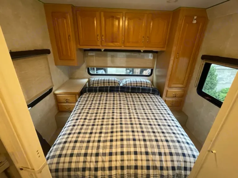 Introducing the 2004 Ford Sunseeker RV – 27 Feet of Comfort and Adventure!Ready for an unforgettable journey? Our 2004 Ford Sunseeker motorhome is here to offer you the perfect mix of comfort and convenience. This spacious RV has been designed with every little detail in mind, ensuring your travels are not only easy but truly enjoyable.Step inside, and you’ll instantly feel at home. The layout is open and airy, creating a cozy atmosphere where you can relax and unwind after a day of adventure. Whether you're on a cross-country road trip or a weekend getaway, you’ll appreciate the thoughtful design that maximizes both style and practicality.Foodies will love the fully-equipped kitchen, complete with stainless steel appliances and plenty of counter space. Everything you need to whip up a meal is right at your fingertips. The dining area is the perfect spot to enjoy your creations with friends and family, making every meal a special occasion.When it's time to rest, you'll sleep in luxury. The master bedroom features a comfy queen-sized bed, giving you the perfect place to recharge for the next day’s adventure. Plus, there’s additional sleeping space with the convertible sofa and dinette – ideal for guests or kids.The bathroom is another highlight, offering a spacious shower, modern fixtures, and plenty of storage for all your toiletries – making it feel like you’ve got the comforts of home on the road.Outside, the RV has even more to offer. The large awning provides a shaded retreat, perfect for relaxing, eating outside, or just enjoying the view. Plus, the generous storage compartments give you plenty of room to bring all your outdoor gear along for the ride.We’ve got you covered on the little things too! All linens and kitchen supplies are included, so you won’t have to worry about a thing when you hit the road. Just pack your bags and let the adventure begin.With its smooth handling and powerful engine, this Sunseeker is ready to take you wherever you want to go – in comfort and style.Book your adventure now and get ready to experience the open road like never before!Qué incluyeChaises, literies, ustensiles, poêles, assiettes et tasses.