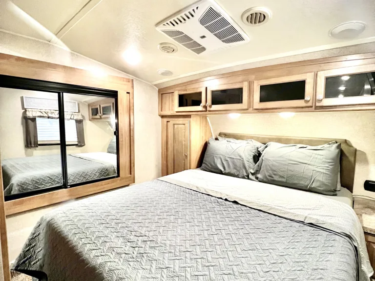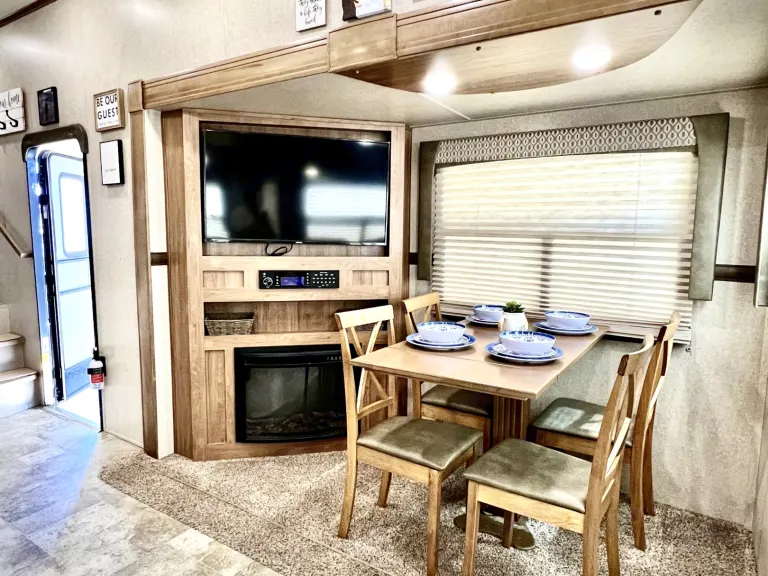The Hideaway is a 2018 Forest River Flagstaff fifth wheel which sleeps 4 comfortably. The Hideaway is plenty spacious and stocked with everything you need for your next camping trip. It has a queen bedroom suite with ample storage and an adjoining full size bathroom. The kitchen and living make for a great use of space while still being able to be nearby, the couch will pull out for additional sleeping. The living room has a tv and fireplace.We provide linens and towels, so you don’t have to bring your own. Please provide us with the number of guest in your party. We also include paper towels and toilet paper.Note: We have other campers available for rent, so we can accommodate more if needed.We look forward to helping you make memories that you will never forget!Follow and Like us on Facebook and Instagram @awtreyoutdoorsQué incluyeStocked kitchen