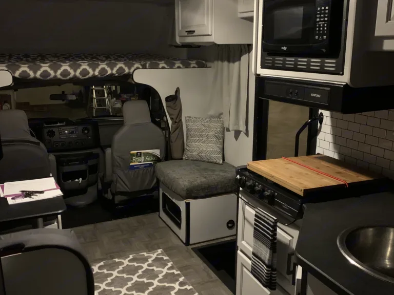We offer lots of included extras such as a fully equipped kitchen (cookware/utensils, tableware, coffee marker), camping chairs (x2) and table, outdoor mat, cleaning supplies. Linens can be provided for a fee. Our RV has several safety measures multiple seat belts (6), fire extinguisher and carbon monoxide monitors.