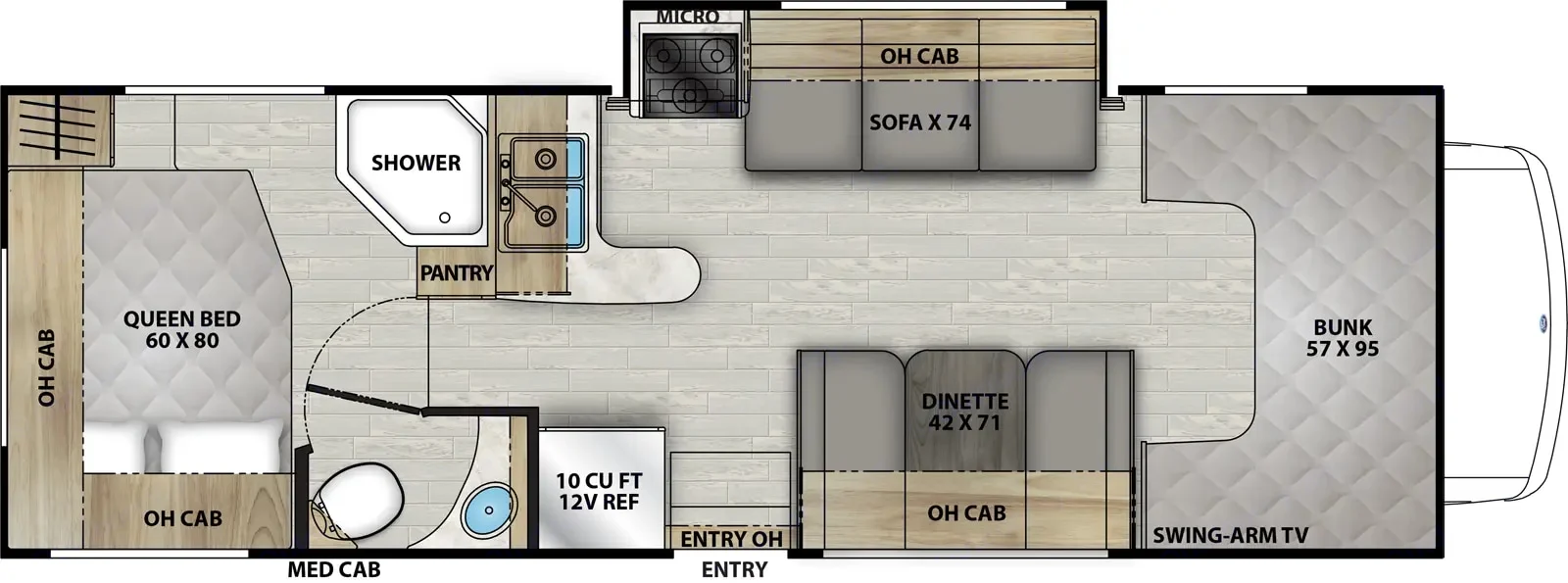 Upgarded Bluetooth Radio w/ Andriod Auto, Apple Carplay.Upgraded Coach Batteries and 110v Inverter installed. You use the TV and charge Laptops and Phones without Shorepower or using Generator!