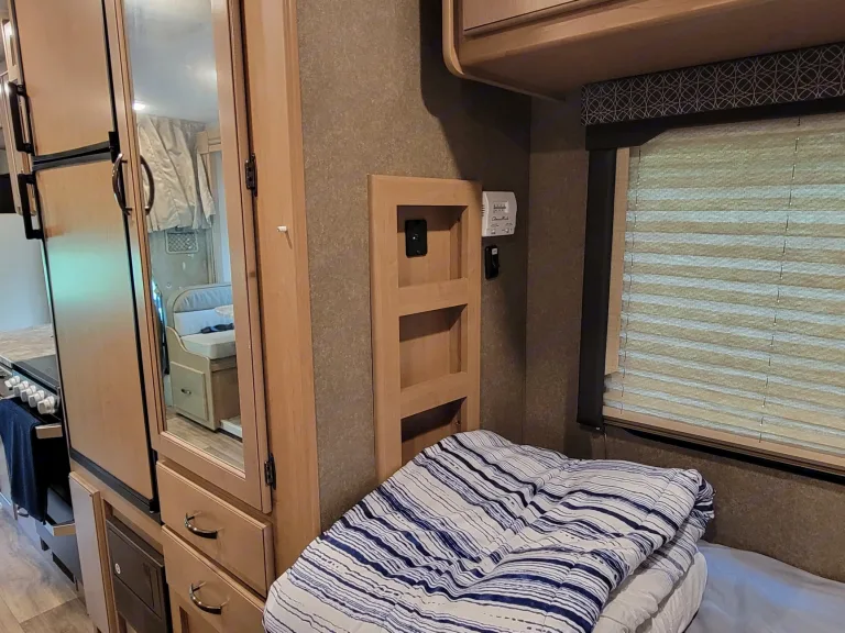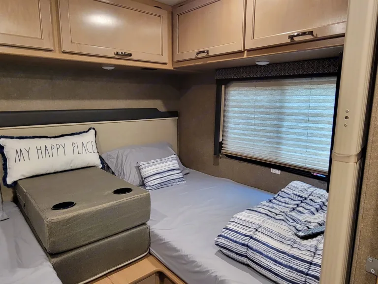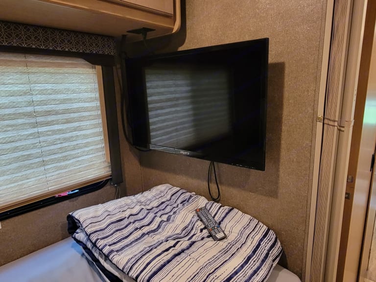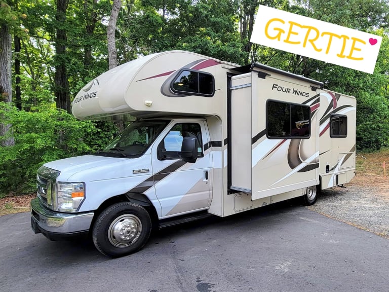 Meet Gertie, our family RV! Enjoy the road and all the sights in complete comfort with your loved ones! Enter the 28foot Class C to find plenty of space and storage for you, your family, and your furry friends. If you will have a furry friend(s) with you, please let us know so we can provide covers to prevent any damages. Damages will result in a fee dependent on the damage.We love traveling with Gertie and so will you! Please don't hesitate to message with any questions. Come onboard and happy travels!Pickup time is at 6PM. Drop off is at 6PM. We are happy to try and work with you on the pick up time. Drop off time is at 6PM. If you are running behind, please just let us know. If you return after midnight, you will be charged $150. Qué incluyeGertie comfortably sleeps six with fresh linens, blankets, comforters, and pillows. Gertie has 2 TVs inside; 1 in the master bedroom and 1 in the bunkbed. The master bedroom can be transformed into 2 twin beds or one king bed. Dinette transforms into a bed. Once at your destination, you can also extend the awning and pop out your camping chairs for outdoor entertainment complete with the outdoor TV.Cook meals on the gas stove top in the fully equipped kitchen. The kitchen is equipped with a 3-burner stove with oven, refrigerator, deep stainless steel sink, kitchen towels, cutlery, dinnerware, and more!Pickup time is at 6PM. Drop off is at 6PM. We are happy to try and work with you on the pick up time. Drop off time is at 6PM. If you are running behind, please just let us know. If you return after midnight, you will be charged $150. Otros detalles importantesPickup time is at 6PM. Drop off is at 6PM. We are happy to try and work with you on the pick up time. Drop off time is at 6PM. If you are running behind, please just let us know. If you return after midnight, you will be charged $150.