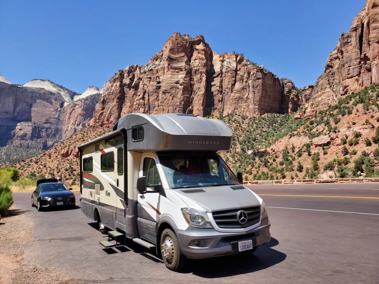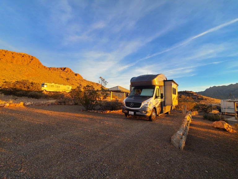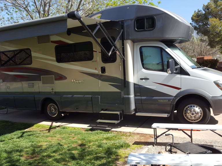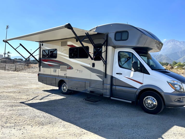 Our 2017 Mercedes-Benz Sprinter motorhome is fully equipped with (2) full-sized beds (one in rear and one above the cab) u-shaped dinette converts to another full bed, sink, gas stove, convection/microwave oven, ventilation, A/C and heater. Modest storage space underneath for all of your outdoor toys.This rig is includes all your essentials such as furnace/water heater system, generator and indoor and outdoor shower. This diesel van is a dream to drive, mainly because if you have driven a van, you can drive this RV. This van is perfect for your ultimate road trip or if you just want to spend the Entire day at your favorite amusement park and take naps or breaks throughout the day!Qué incluyeOur renters have taught us that storage was most important so we've removed all the various accessories. You get to take with you what you want! This includes bedding as well as many of our guests brought their own sheets and/or sleeping bags! Full bedding sets are available as an add-on. If you plan on bringing your own, dimensions are as follows:50”x80” Full XL - Rear bed
