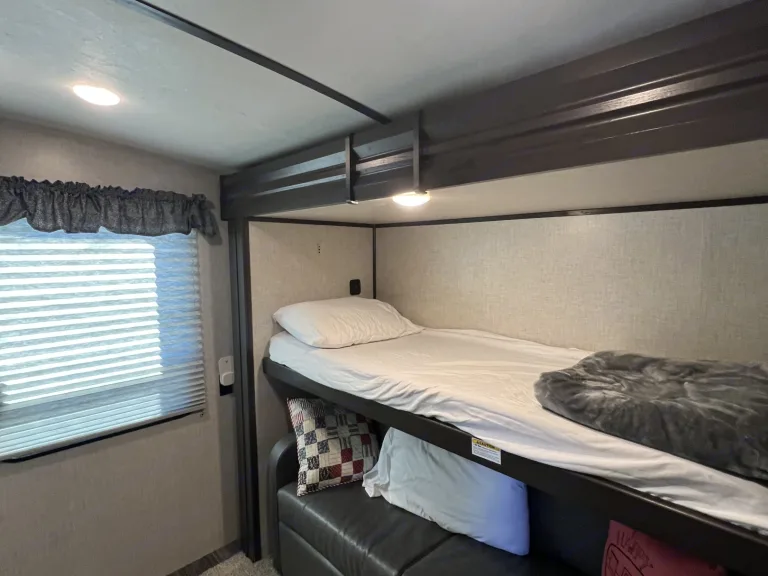 2021 Keystone Premier 34BiprSpacious • Modern • Fully StockedThis luxury travel trailer has all the space and comfort your family or group could want. The Keystone Premier 34Bipr sleeps up to 8 guests comfortably and comes fully stocked — just pack your clothes, food, and favorite drinks!Inside, you’ll find a bright, open living area with dual slide-outs, a large sofa, dinette, and a flat-screen TV with Bluetooth sound system. The kitchen is fully equipped with cookware, utensils, plates, cups, pots and pans, knives, and all the essentials to make meals easy while you’re away. There’s also a large refrigerator, three-burner stove, oven, and microwave.The private master bedroom features a queen bed with fresh linens and plenty of storage. In the back, the bunkhouse gives kids or extra guests their own space, complete with bunks and an additional sofa. The bathroom has a spacious shower, toilet, and sink — stocked with towels, soap, and basic toiletries.Outside, relax under the power awning with LED lights, enjoy the outdoor kitchen and speakers, or sit back while we take care of setup, leveling, and full hookup connections.Like all our rentals, this unit comes ready to roll with: