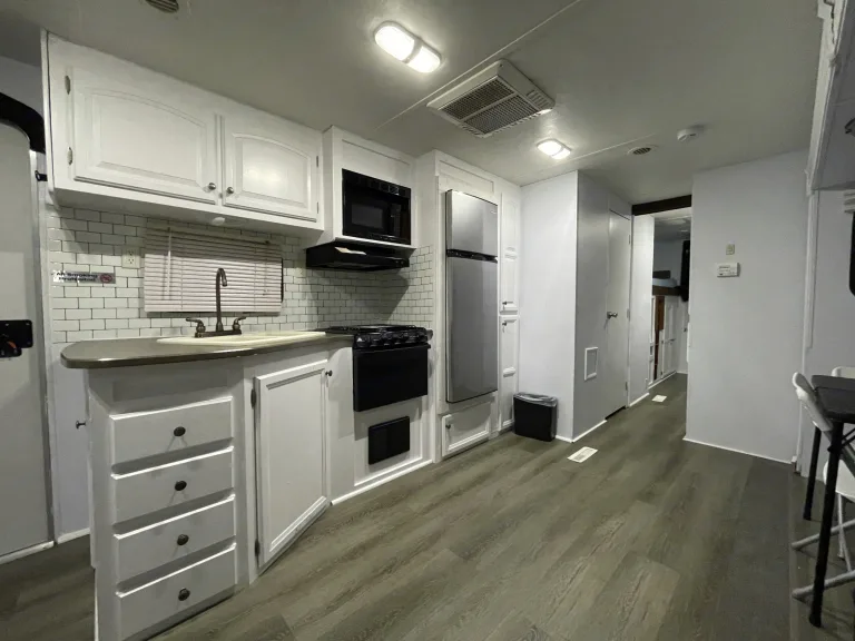 Super sleeper! Sleeps up to 10! Great camper which received all new appliances, new upgraded mattresses and paint in 2024. This is a large 2 bedroom model which features a full size residential king bed in the master! This is my most popular unit out of all 4 because it is so versatile.Beds- King, Double, 2 twin bunks, Futon, and 2 twin air mattresses that go where the table/chairs are!10x10 pop up tent provided at no extra charge.Unlimited generator use available on a per day basis. Qué incluyeWhat’s included