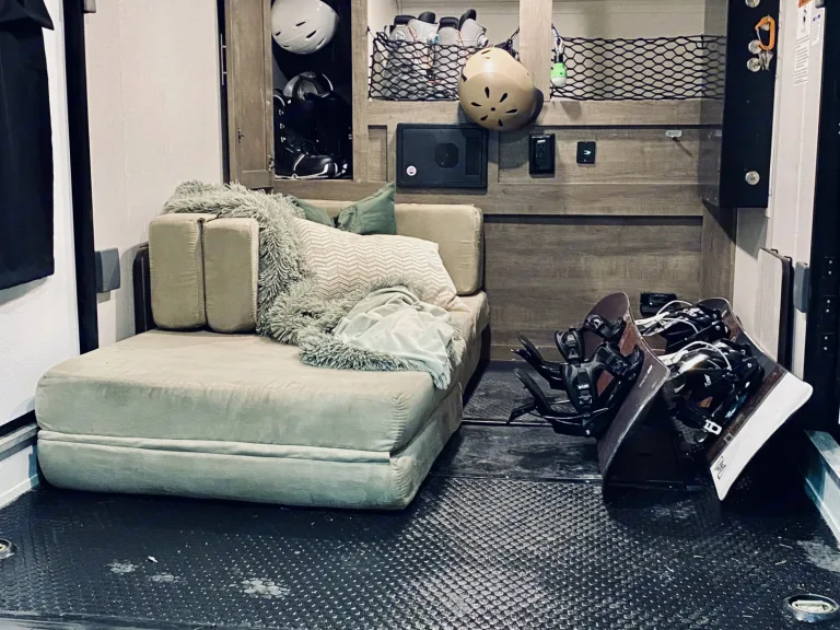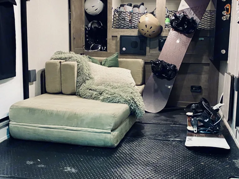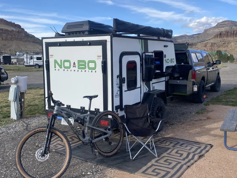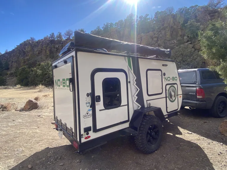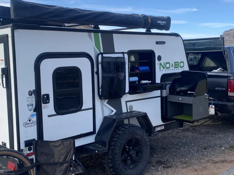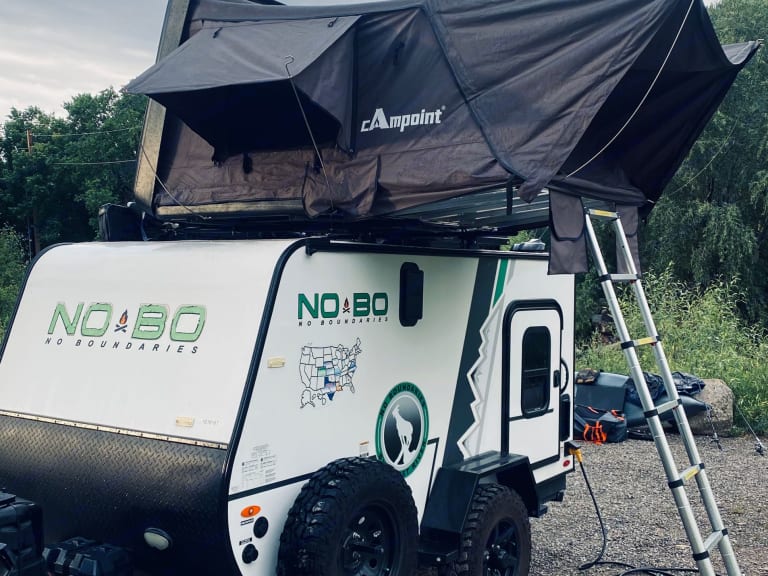 Welcome to the easy towing and smooth setup perfect for adventure! This 2019 Nobo 10.6 is the ideal trailer for a weekend in the backcountry or a week at the plug and play campground.This adventure rig sleeps 2-6 comfortably and includes a slide-out kitchen complete with fridge/freezer, propane cooktop, and accessible sink/spray combo for fast cleanup. A 30-gallon tank provides plenty or connect right to campground supply for endless water during your stay.Outside, this lightweight hauler has a built-in batwing awning for shade and rain cover and a fold-down ramp door for your gear (also doubles as a patio). On top, the integrated cross bars can be used to tie down other gear, mount the add-on racks and kayaks (fee applies), or stash your firewood and other supplies for the memorable trip ahead.This maneuverable rig has enough room inside to safely haul your dirt bikes, smaller ATV (max length 82”), or extra bikes, boats, and supplies.Whether you haul extra or not, you’ll find the interior spacious and comfortable. The fold-up couch extends into two cushiony sleeping pads or combine into one bed to share. If you prefer, we can replace these cushions with a full-size foam mattress for your trip.When plugged into shore power or a generator, the AC/heater combo keeps you comfortable and the standard plugs can be used for small appliances and conveniences from home.Please know that this trailer does not include toilet facilities. Water tank holds water but is not recommended for drinking. Please bring your own drinking water or a filtration system to ensure that stored water is safe to drink.For trips during colder times, a generator (not included in the rental) or campground electricity service is required to run the heater.Qué incluyeListing includes the following: