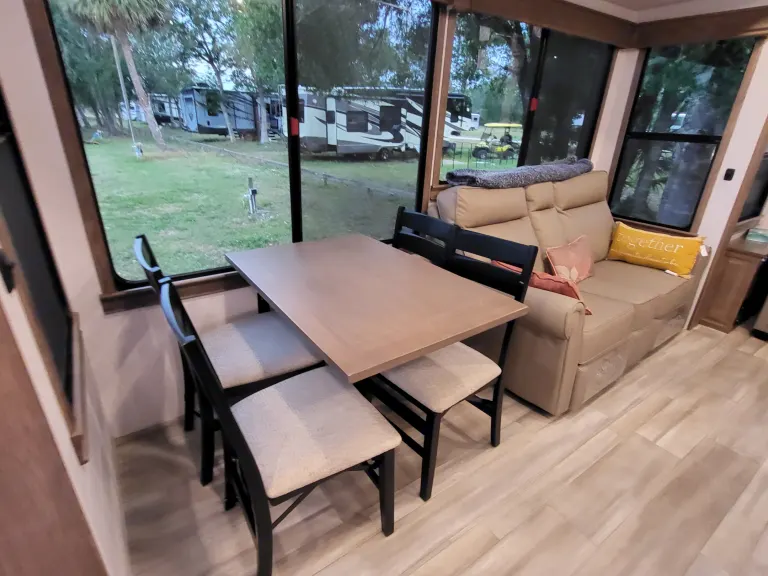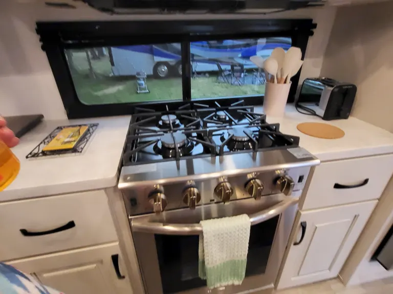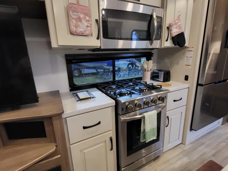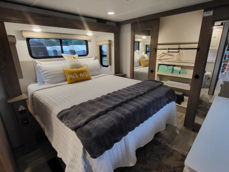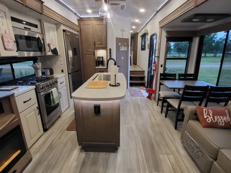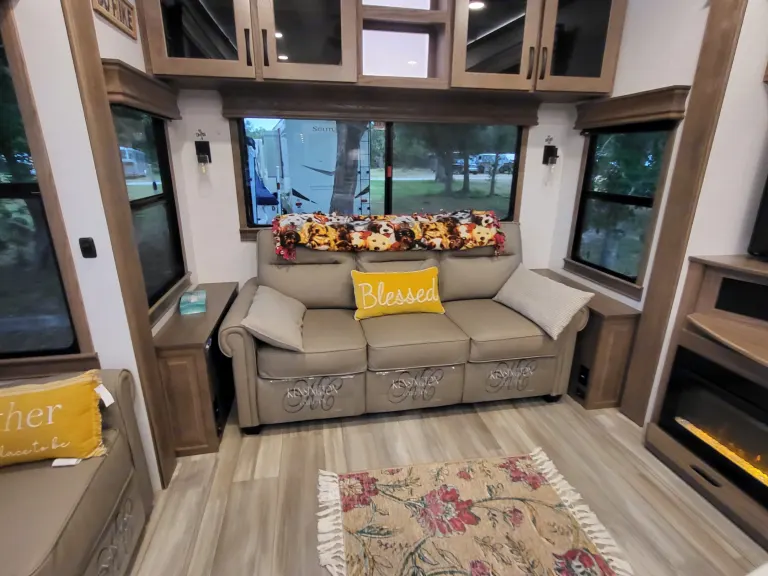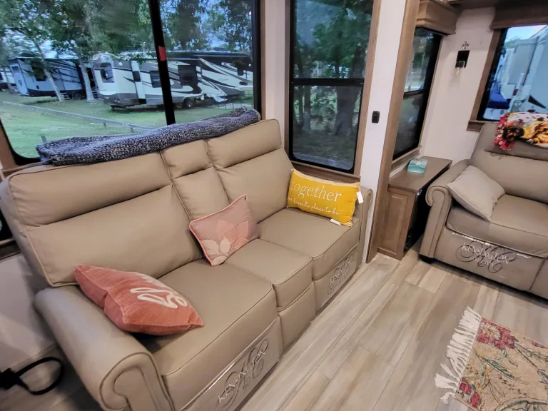 40 ft 5th wheel with a second bedroom or office, oversized windows for great views of your surroundings 4 slide outs, residential appliances,built in ice maker. Ready for your amazing getaway? All you need to bring are your personal belongings, we take care of the rest,