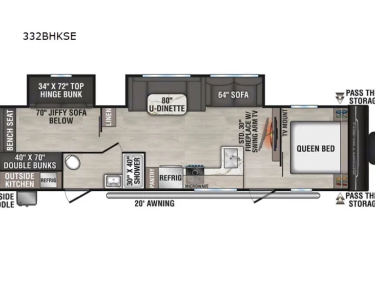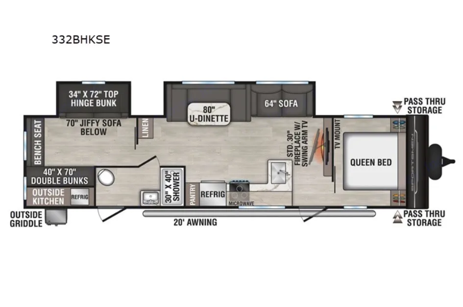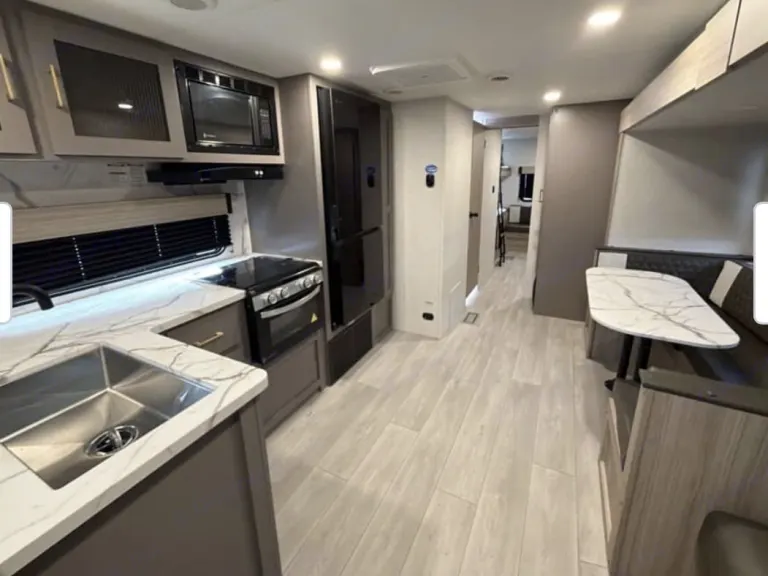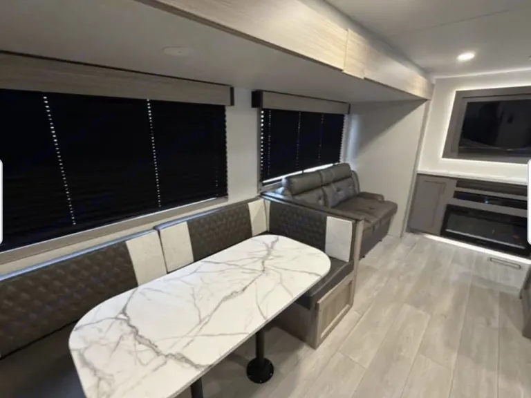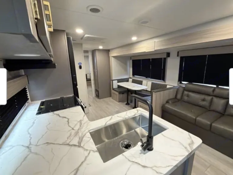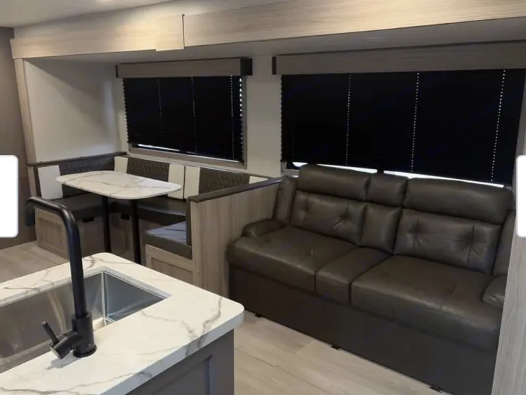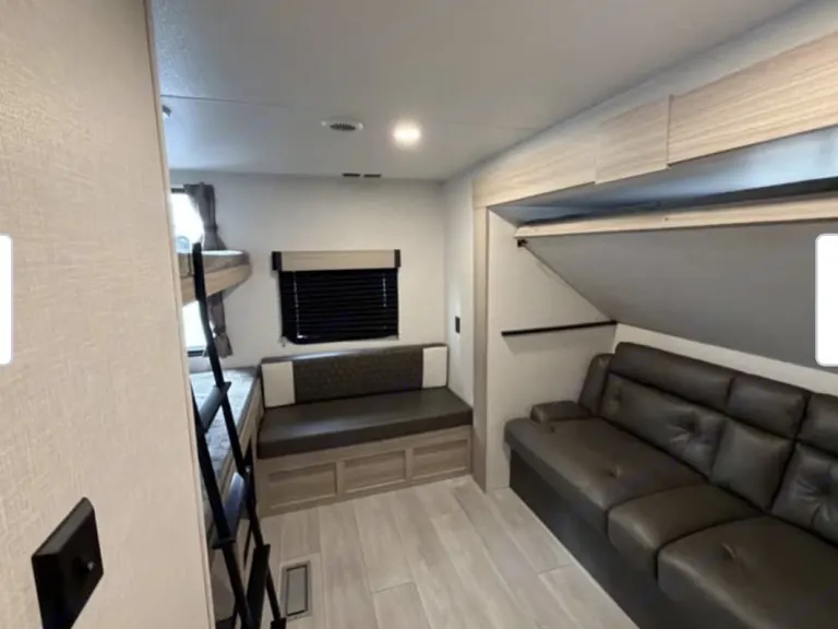 Beautiful new spacious rig with everything you need to sleep a large family or friends. Private Queen bedroom, private extra large bunk room with sofa, large smart tv & Bluetooth stereo for the big games along with a fireplace in your main area. Kitchen loaded with cooking essentials and a larger bathroom shower space with outside door access. Outside you will find a large awning and outdoor kitchen to prepare your favorite meals. Qué incluyeOutdoor grill. All bedding and bath linens along with a fully stocked kitchen are included to make your experience as seamless as possible.