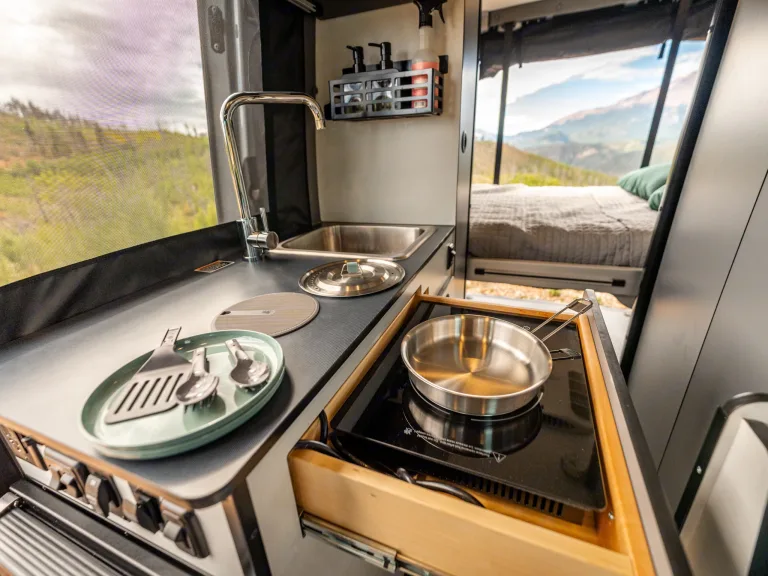 The mountains are calling—answer them in a Revel.Qué incluyeWe believe in providing a seamless and memorable experience. That's why our Revel comes fully stocked with all the essentials you need, including:Kitchen & Dining: Cookware, utensils, plates, bowls, and mugs. Coffee maker (French Press) and kettle.Cozy Comforts: High-quality sheets, pillows, and warm blankets for the power lift bed.Outdoor Gear: Two collapsible camping chairs, an outdoor rug, and a portable grill for a quick mountainside cookout.Recomendaciones"Renter's Guidebook" to help you master all of the Revel's features with ease.Book your 2025 Revel today and unlock the magic of the Colorado mountains this fall and winter. The road is calling.Otros detalles importantesNo smoking