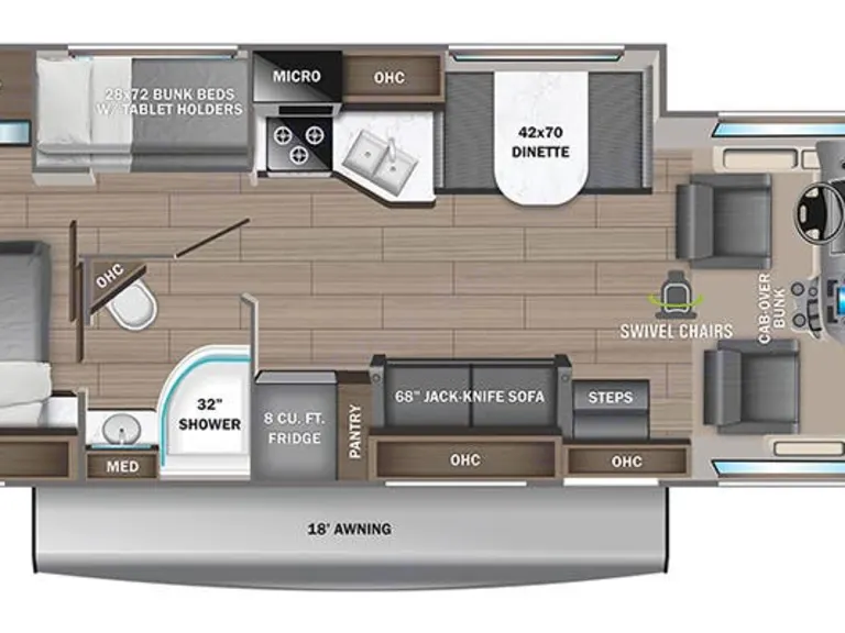 This is the perfect option for a family getaway, with plenty of space for everyone and all of their things! The spacious floor plan boasts bunk beds, a microwave, fridge, oven, stovetop, an easy-operation legless dinette system, a large bedroom wardrobe, a queen bed with an under-bed storage compartment, and much more.Pickup Time: Between 1 pm - 4 pm