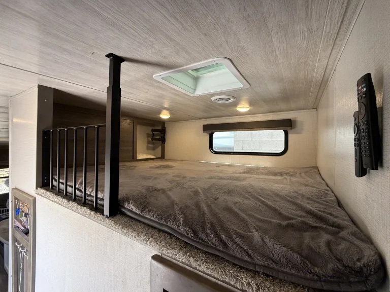 Make your next family getaway easy and comfortable in our 2022 Keystone Cougar 368MBI! Located in Eagle Mountain, this roomy fifth wheel sleeps 10+ and offers all the comforts of home. With a king-size master bed, a private bunkhouse with its own TV, and a kid-friendly loft above, there’s space for everyone. The rear living layout and 4 slide-outs give you maximum room to relax.Enjoy endless hot water with a tankless water heater, stay cool with two ducted A/C units, and power up with solar + inverter support for select outlets. The main living area has a large TV, and the kitchen is stocked with cookware and essentials. We provide linens for the master bed and towels for the bathroom—just bring additional bedding for the rest of your crew.-Pet-friendly (please be mindful—damage from pets will be charged)