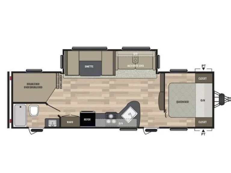 This camper is delivery only.Master Bedroom: Large private bedroom with queen bed and closets.Bunkroom: Two sets of double sized bunks.Misc Sleeping: The dining table and couch also convert to beds for additional sleeping.Indoor Kitchen: Comes with pots and pans, coffee pot, toaster, dishes, utensils, knifes, plates, bowls, scrub brush, broom, and mop. Also comes with microwave and stove top/oven.Entertainment: Comes equipped with TV hookup and radioBathroom: Toilet, sink, shower, toilet paper, septic tabs, and bathtub.YOU Provide: linens (sheets, blankets, pillows) and towelsDelivery: Delivery, setup and pickup available for a feeRefundable Damage Deposit: $1,000WHY Rent With US?