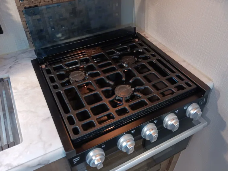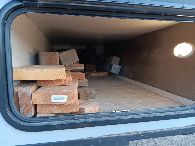 • outdoor kitchen area with stove and fridge (shore power needed).