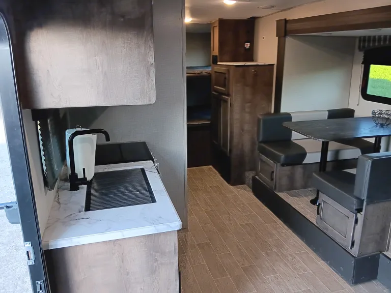Our Sonic has been our great way to build family memories. It is set up nicely for a family with large bunk beds. The kitchen table and fridge slides out for extra room. It is lightweight and tows nicely. We have kept it in very nice condition and well-maintained. It is ready to enjoy and make some memories.If you are looking for a relaxing weekend in Ellensburg WA, please check out the Hipcamp website, where you can search "The Hay Farm" and get a site booked. We can have our Sonic RV all set up and ready for your stay. Qué incluye• You'll find that the Sonic has all the features needed for a great weekend stay,