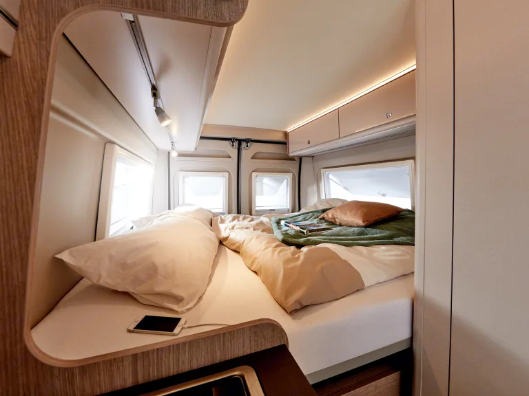 Pour partir jusqu'à 4 avec un fourgon compact et bien équipé, l'Ushuaia à toit relevable est celui qu'il vous faut ! Rangements, cuisine, frigo, salle de bain, chauffage, WC, auvent, moustiquaire, éclairage extérieur !