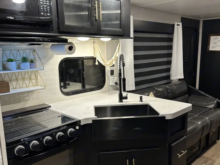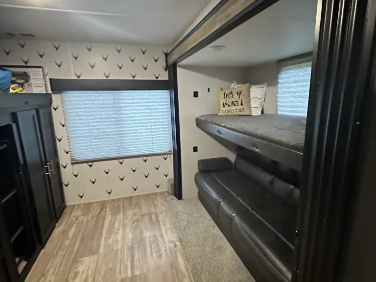 Step inside our beautifully decorated, spacious 38ft travel trailer and feel instantly at home — no matter where the road takes you. This cozy travel trailer is designed for comfort, charm, and connection, with thoughtful touches that make every stay special.Wake up and enjoy coffee at the dinette while planning the day’s adventures, and gather in the evening under a blanket of stars. Whether you’re roasting marshmallows by the fire, exploring scenic trails, or simply relaxing in your own little haven, every moment here is about slowing down and soaking it all in.Perfect for couples, families, or friends, our camper offers all the comforts of home — from a well-stocked kitchen to comfortable bedding — so you can focus on what matters most: making memories you’ll carry long after the trip is over.Would love to be a part of you making last memories. Qué incluye•Kitchen Includes: