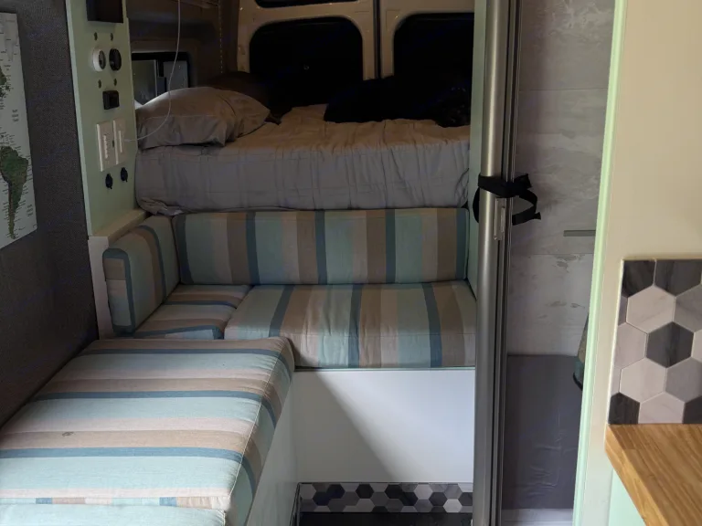 • Window coversRecomendacionesAvandra is ready to camp anywhere! Whether you choose to be at a campground with services, or boondock on the top of a mountain....she is ready! Note: If/when running the air conditioner on full power, you will need to drive or hookup to shore power every 2 days to ensure adequate power. Otros detalles importantesNo smoking of anything in the van!