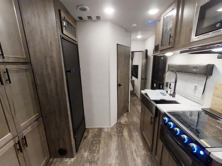 • Lock down all cabinets/frig and storage cart prior to moving the RV.