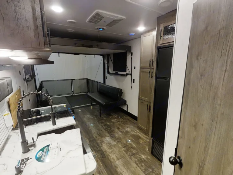 Adventure-Ready RV Toy Hauler – Bring the Fun With You!Load up your toys and hit the road! This RV toy hauler is the perfect home base for unforgettable outdoor adventures—whether you’re heading to a bike rally, trails, racetrack, the lake, or a weekend campground getaway.Garage/Toy Area (Rear):Large cargo space you can use as a garage for bikes, ATVs, dirt bikes, motorcycles, side-by-side, etc. with tie-down tracks on the floor. 1-2 wheel motorcycle chock system available for an additional fee (currently holds a 06 Hertiage Softail and a 03 Roadking).Ramp door at the back makes loading gear easy and can also converts into a patio deck with railing.A RV queen manual folding bunk is located over the sofas for additional sleeping (ladder included for easy access).The garage floor is vinyl — with removable carpets for comfort.Kitchen & Living Space (Central Area)As you move forward from the garage, you enter the kitchen / living space.The kitchen features include:A three-burner cooktop with oven and a microwave.A large 10 cu ft refrigerator/freezer for food and drinks.A residential‐style sink with a pull-out sprayer faucet and a sink cover/cutting board.Pantry storage for dry goods and a rolling storage cart for additional counter space.Equipped with pots, pans, utencils, silverware, storage containers, baking dishes, cups, toaster, and a Keurig coffee maker.Opposite the kitchen, you’ll find seating — two sofas that are mounted to the wall that double as extra sleeping / lounging space when the toys are unloaded. Please note, if you are hauling 2 larger motorcycles or even a side-by-side, these sofas (booth) will need to be removed (by me) to accommodate larger toys. (if needed, all sheets, blankets, and pillows will be provided).There is also a folding table that pairs with the sofas for meals if the sofas are left inside the RV. If not, it can be used as an outside table or more counter space inside.Windows with zebra or blackout shades help control light and privacy.Bathroom:A standard bathroom is located mid-unit between the living area and bedroom with Jack & Jill doors from the main living space and the private bedroom.Inside the bathroom you’ll find:A toilet and radius shower with a glass door.A sink with small countertop and medicine cabinet/ mirror.Vinyl flooring for easy cleanup.Towels, wash clothes, hand soap, and toilet paper all provided.Bedroom (Front):Up front is a private sleeping area with a RV king-size bed — one of the nicer features for comfort.There’s room on either side of the bed for walking.All sheets, blankets, and pillows provided.Curtains for privacy and light control.Comfort & Amenities:15,000 BTU ducted air conditioning and a 35,000 BTU furnace keep the interior comfortable.LED interior lighting helps brighten the space while conserving power.USB charging ports near sleeping areas and living areas for your charging convenience.If camping without electrical hookups, a super quiet "Predator" generator available for an additional fee.For more information about this RV, watch this video: https://www.youtube.com/watch?v=ZKok1hOKupE