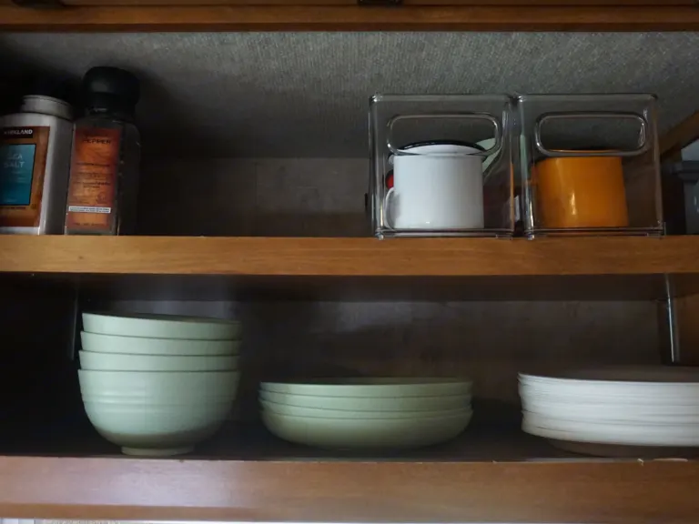 -bowls, plates, cups, coffee mugs, and re-usable silverware.