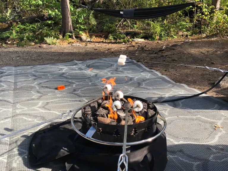 -camping chairs, large outdoor rug, propane fire pit (always check campground for burn bans first).