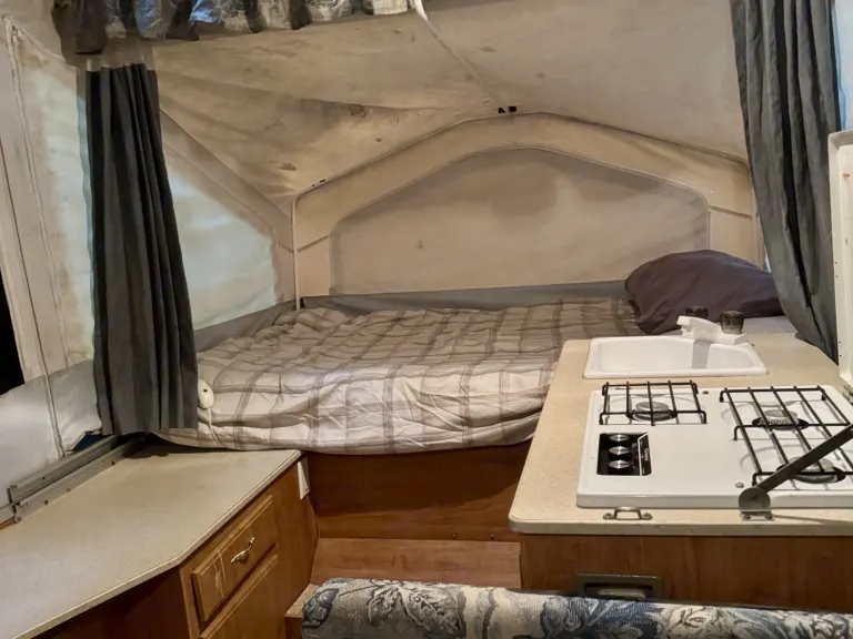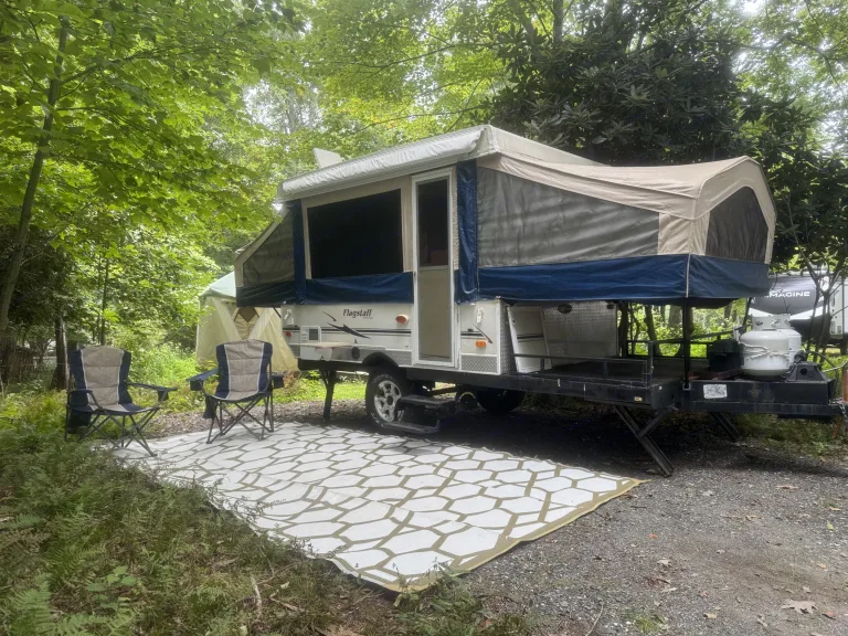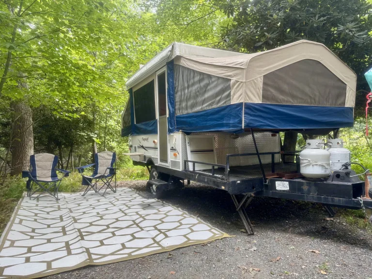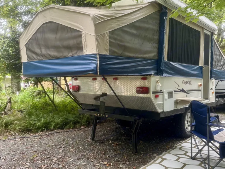 This is a nice little pop up. It is capable of going off road and can haul SXS, 4 wheeler, motorcycle, bicycles or a golf cart. Empty weight is 2100lbs, max loaded weight is 3300lbs. Will need SUV or Truck to tow. Goes up and down with a push of a button. Easy to set up and break down, delivery and setup is an option we can do also.