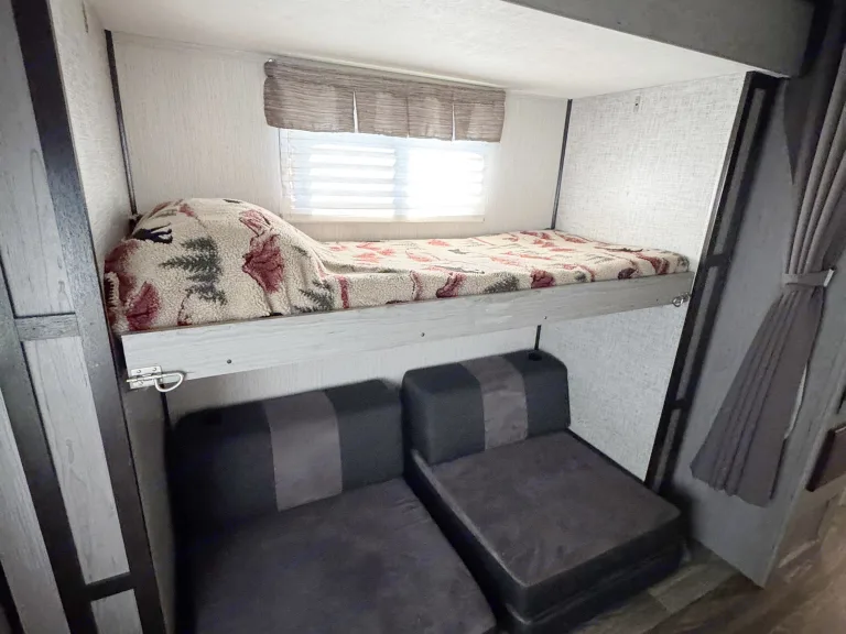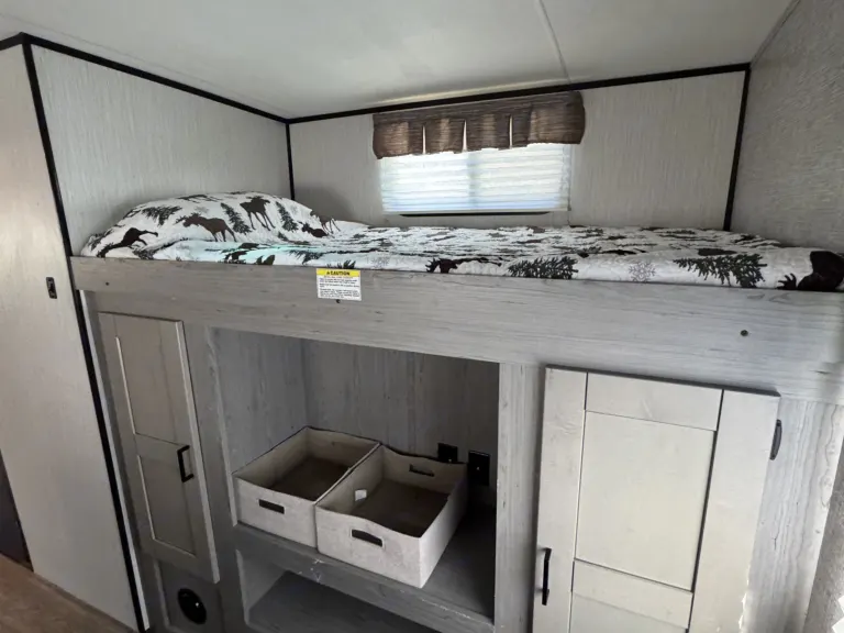 Our M32 Mallard Bunkhouse is ready for your adventure! Sleeps up to 8 comfortably with 2 slide outs giving you plenty of space inside for the family...but our favorite feature is the fabulous outdoor kitchen. Qué incluye•Inside Kitchen: pots, pans, plates, cups, silverware, cooking utensils, spices, crockpot, blender
