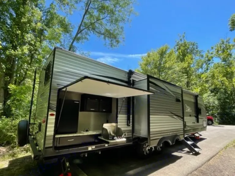 NO Smoking = Loss OF Total Deposit!The 2021 Jayco Jay Flight 33Rbts is the ultimate bunkhouse, with three total slide outs and an outside kitchen, provides everything you need for traveling in comfort. You'll appreciate this generously sized travel trailer.Whats Included Free with our camper rental:* Towels, all linens and pillows