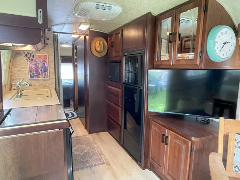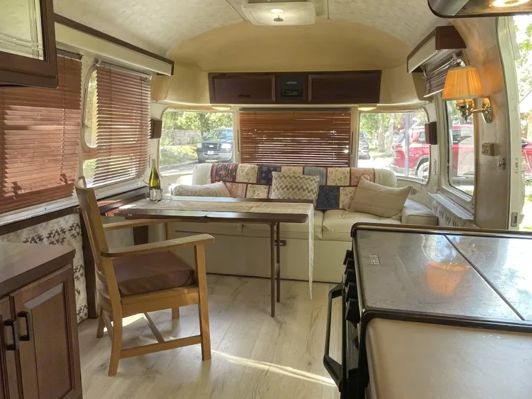 The service includes delivering and setting up the trailer at predetermined campgrounds or event sites, including weddings, festivals, reunions, or photo ops across the state. The Airstream interior features custom wood finishes, a gourmet galley, comfortable sleeping space, and a stylish living room, giving guests a nostalgic and luxurious escape.