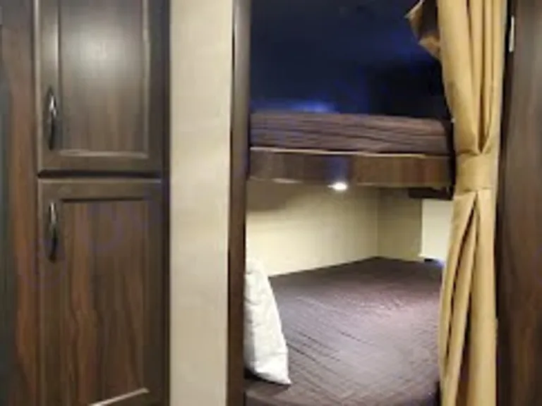 Sure, happy to help!The 30 ft travel trailer bunkhouse for rent is a perfect option for a family or group of friends looking for comfortable and spacious accommodation on their travels.Upon entering, you will find a cozy living area with a comfortable sofa and a dinette that can be converted into an additional sleeping space. The kitchen is fully equipped with a refrigerator, stove, oven, microwave, and sink, making it easy to prepare delicious meals.At the back of the travel trailer, you'll find a separate sleeping area with bunk beds that can comfortably sleep two to four individuals. There's also a private master bedroom at the front of the trailer with a queen-size bed that can accommodate two adults.The bathroom features a toilet, sink, and shower, perfect for refreshing after a day of outdoor adventures.Additionally, the travel trailer is equipped with heating and air conditioning to ensure a comfortable stay no matter what the weather conditions are.Overall, the 30 ft travel trailer bunkhouse for rent is a comfortable and spacious option for families or groups of friends looking for a cozy and convenient home away from home during their travels.Otros detalles importantesWe will take 2 night booking 14 days out, otherwise there is an additional charge of half a night.
