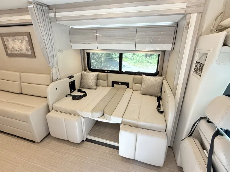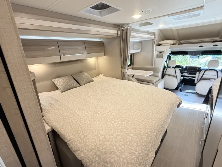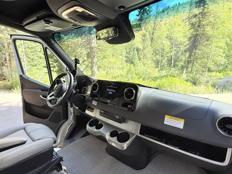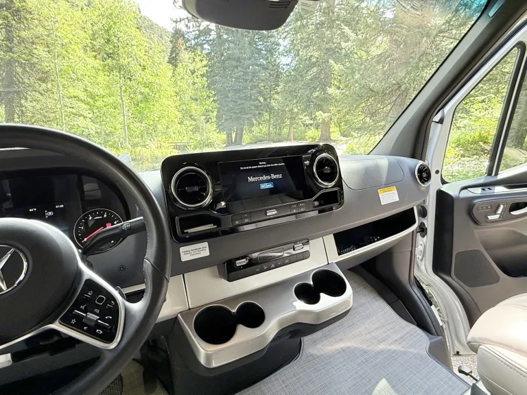 New to our fleet in mid-September 2025!! Get ready to hit the road in style and comfort with our beautiful 2022 luxury Mercedes Thor Delano 24FB! Whether you’re planning a weekend getaway in the local National Parks or beautiful nearby mountains, a cross country road trip, or an outdoor adventure, this luxury class C motorhome has everything you need to travel with ease. This rig has been very well kept, is nearly new and in great condition, and has all the accessories you could dream of!Drive with ease knowing you have all the most up to date, top safety features. The Mercedes-Benz safety package includes: Active Braking Assist, Cruise Control Assist, Attention Assist, Active Lane Keeping Assist, Crosswind Assist, WetWiper System, Rear Camera, and Distance Regulator Distronic Plus.Equipped with an onboard generator, automatic leveling jacks with touch pad controls, full outside awning with LED lights, electric heated driver and passenger captain's seats that swivel, TV with iPhone Hdmi hook up, two burner stovetop, convection microwave, on demand water heater, an incredibly quiet AC and heating system, inverter, solar charging system with solar controller, propane tank, Mercedes-Benz multimedia dash radio with Bluetooth, Navigation, & SiriusXM stereo capabilities, and Winegard ConnecT 2.0 Wifi, you’ll have everything that you need in one package! We also have a Starlink package with unlimited data for additional charge.This quiet, smooth riding diesel Mercedes has all the bells and whistles and gets great fuel economy, averaging 16-18 miles per gallon! Compare this to similar size gas rigs that only get about 6–8 miles per gallon and are so loud inside, you can barely hold a conversation while driving (trust us - we've had both!)It's also spacious yet compact. At 24 feet, it is easy to maneuver and fits in most campsites while still providing plenty of room for your crew. Keep in mind that a lot of National parks restrict vehicle length, and this is a perfect rig that will easily be allowed in most National and State parks. It sleeps up to 6, with a queen bed, a convertible dinette, and an overhead bunk, there's plenty of sleeping space for families, couples, or small groups. Plus, there is room for 2 pack and plays for the little ones when the motorhome is parked and slide is extended.You will also be able to enjoy the privacy of your own full bathroom. No need for campground restrooms - you can enjoy your own private shower, toilet, and sink.Ready to roll? Book your adventure today and experience the open road in luxury! Have questions? We're happy to help!See all the fun new add-ons! Including new, 2025 E-bikes, 2025 mountain bikes, new inflatable paddle boards, camping and hiking gear, and kids gear!Note* if you bring back the RV in good, clean condition (same as you received it), cleaning fee will not be charged. However if we need to do more than a basic wipe down, additional cleaning fee will be charged.Absolutely NO Burning MAN. If vehicle is discovered to be taken to Burning Man unauthorized, there will be a minimum $40,000 fee assessed.