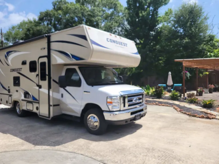 Our guests consistently rate our RVs 4.9/5 for cleanliness, comfort, and overall experience — we strive to provide the same for every rental! We maintain a clean, fully stocked RV to ensure a comfortable trip. All linens are fresh, and every RV is thoroughly inspected before each rental. Explore Texas and beyond in this clean, reliable 23-foot Gulf Stream Conquest Class C motorhome! Built on a Ford E350 chassis, it's easy to drive and perfect for families, couples, or friends looking to hit the road in comfort.Inside, you'll find a cozy layout with a rear queen bed, a full-size overhead bunk, and a dinette that converts into a twin bed, comfortably sleeping up to 6. The fully equipped kitchen includes a 3-burner stove, microwave, oven, sink, and fridge — great for cooking on the go.The bathroom offers a shower, toilet, and vanity with storage. Stay cool with the powerful A/C or warm on cooler nights with the onboard furnace. The RV includes plenty of interior and exterior storage compartments for all your adventure gear.Key Features:Sleeps 6 (Queen bed, Overhead bunk, Dinette bed)Private bathroom with showerOne slide out for the bed30-amp hook-up for RV parks55-gallon fuel tank (~9–10 mpg)Fully stocked kitchen & add-on camping gear availablePropane Policy: