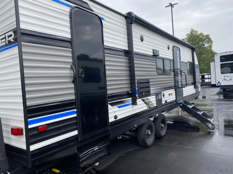 - Make sure all equipment including, power cord, dump hose, water hose, water pressure regulator, ect, is stored away in the compartments