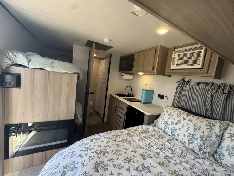 • Comfy sleeping for up to 4 – Queen bed & bunks with fresh bedding