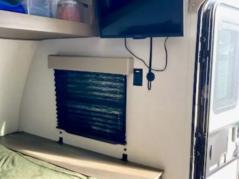 LP quick‑connect for external grill, bottle opener hook, magnetic storage door catches, walk‑on roof, spare tire carrier, tinted windows, ladder prep, and black‑tank flush outInterior & Tech