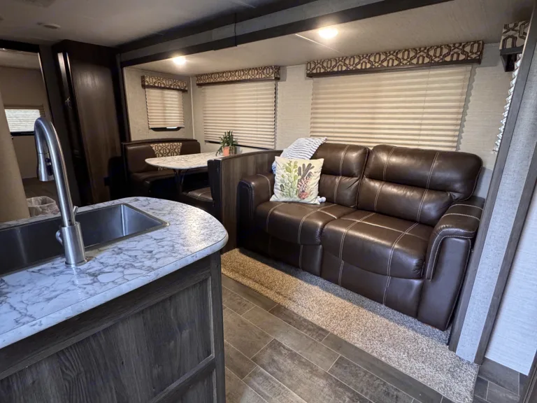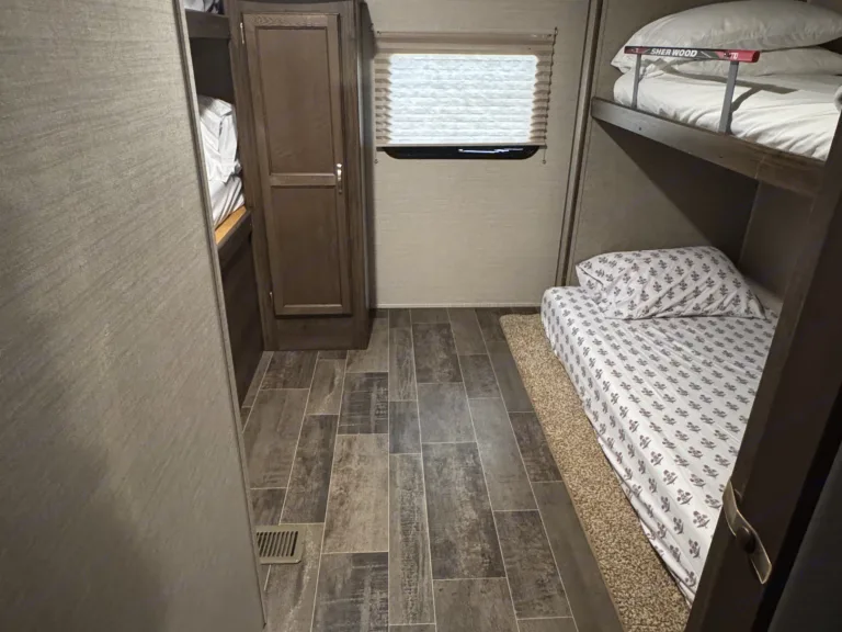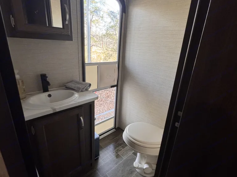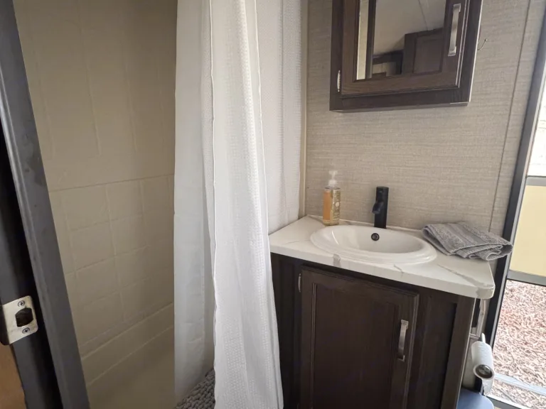 Its unique outdoor bathroom access and shower keeps sand and dirt outside.
