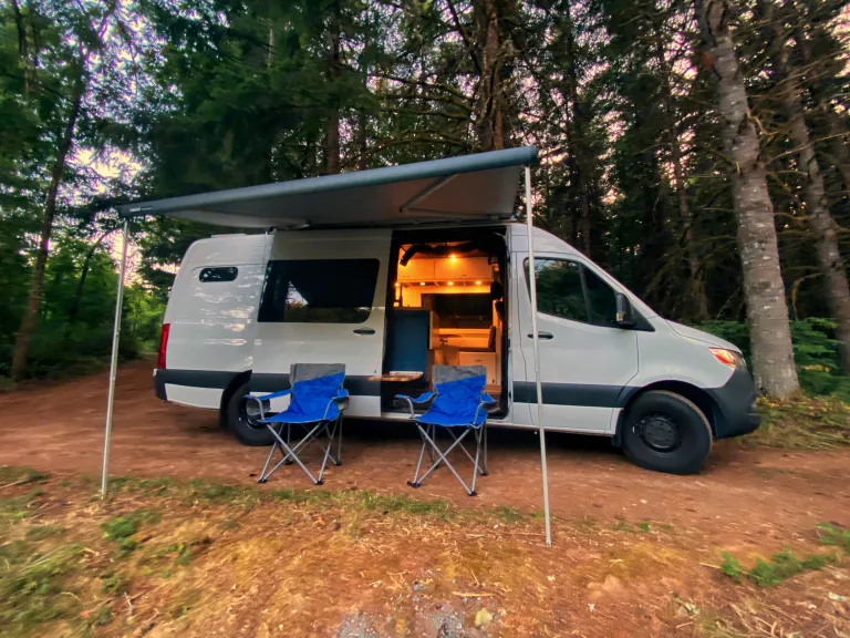 - Renogy lithium battery system + Renogy 2000W inverter/chargerOn chilly nights, the Webasto heater will keep you cozy. And when it’s warm outside, Dual fans keep cool breezes in and bug screens will keep the bugs out. To soak up more time in the great outdoors, create the ultimate camp set-up with the Thule awning, heavy duty camp chairs, foldout table, and the dual burner butane stove.You’ll enjoy a top of the line experience in Vista!Location