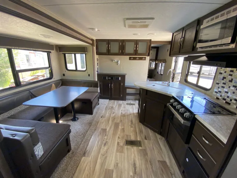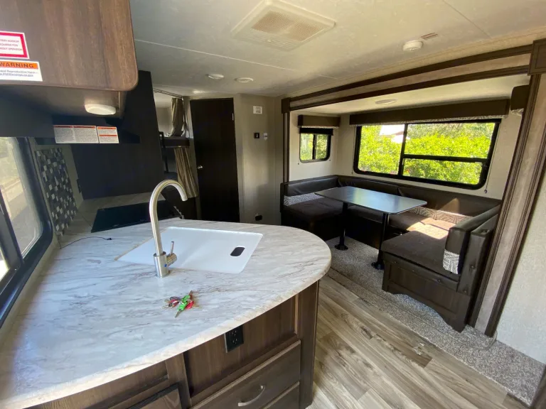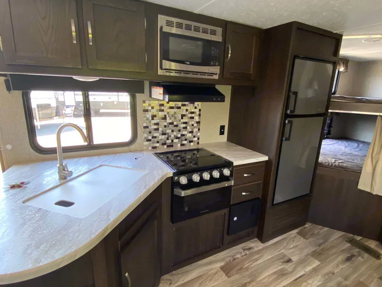 This 2020 24' Bunkhouse is great for the whole family. offering Size and functionality. 1 Large u shape dinette on the slide out. Outside Kitchen with smaller fridge. This trailer comes with all the necessities for a fun and successful camping trip. Utensils, plates, bowls, cups, coffee pot, Toaster etc. all included.