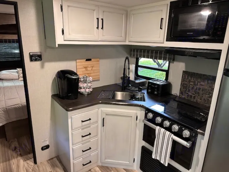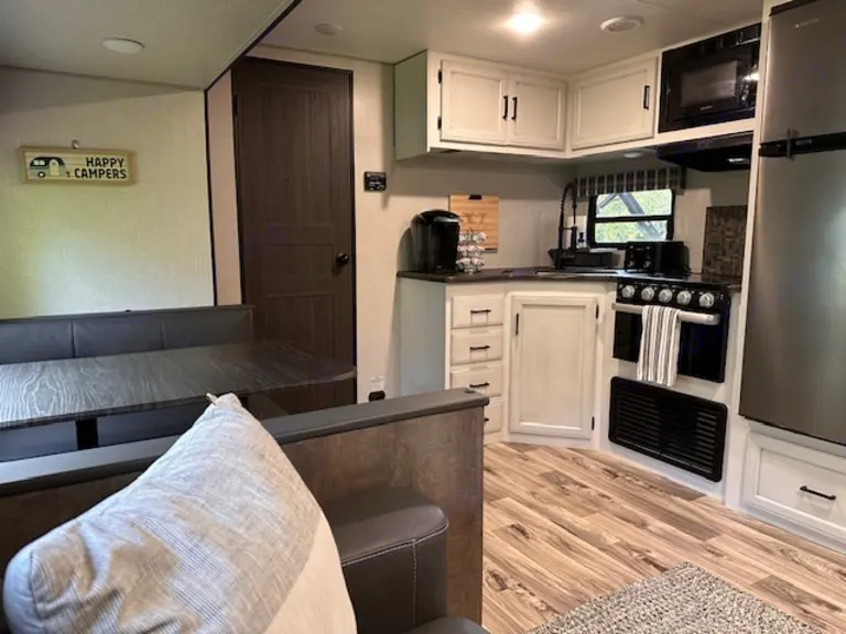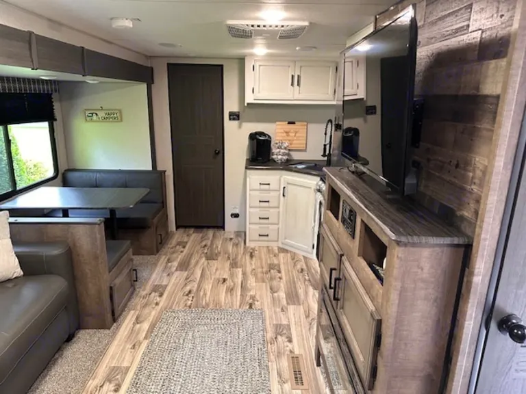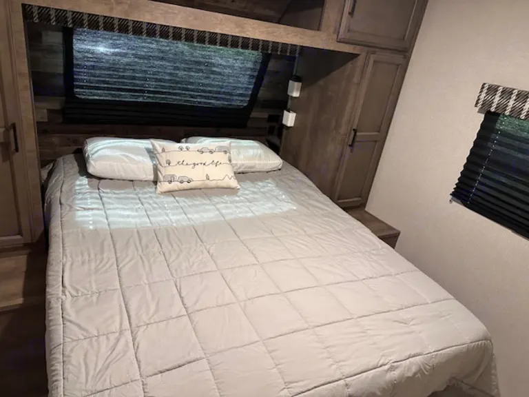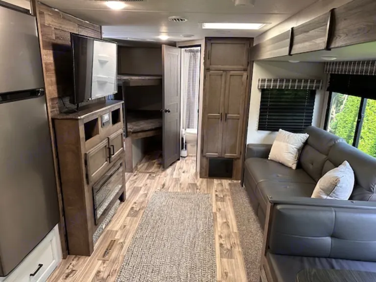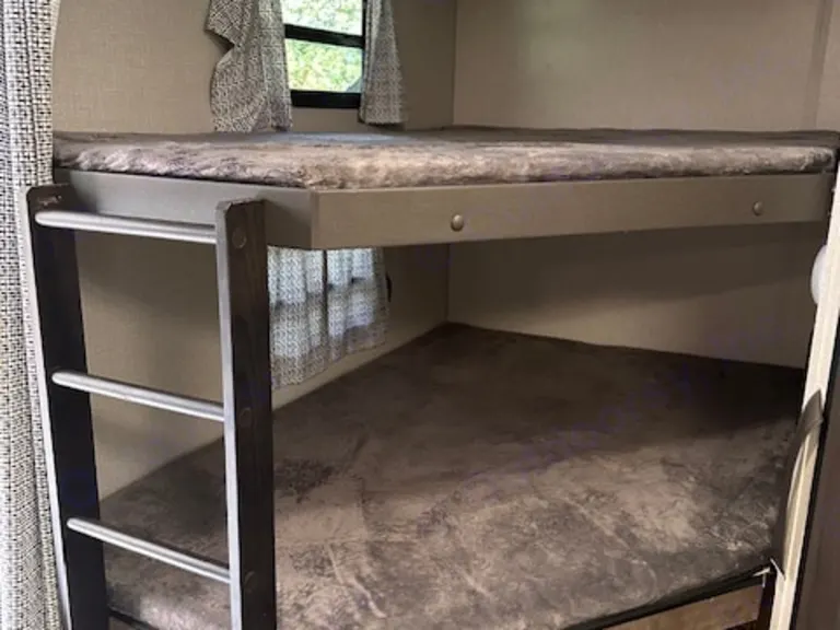 The Vibe & PerksStyle Points: Modern finishes, smart use of space, generous windows, bunk beds in the back that make it ideal for kids (or grownups who never outgrow them).All‑Season Ready: Decent insulation, solid furnace (~30,000 BTU) to keep things cozy when it’s cold. If the rain rolls in or heat blazes, you’re covered.