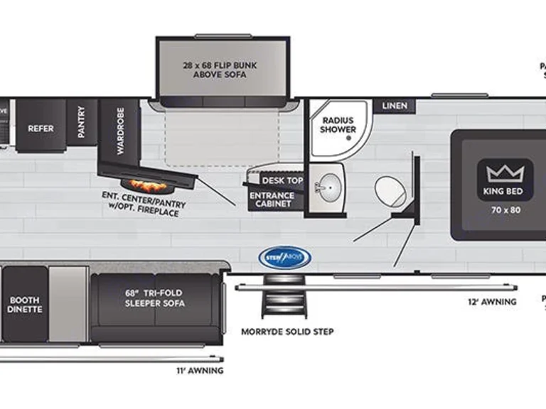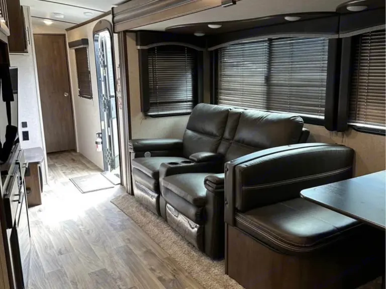 This bunkhouse-style fifth wheel is ideal for families, friend groups, or anyone who wants to camp in comfort without sacrificing space. With private sleeping quarters, residential-style amenities, and a thoughtfully designed layout, the 2021 Keystone Cougar 31MBS makes every trip feel like home.Sleeps 8–10 ComfortablyPrivate master bedroom with a walkaround queen bedMid-bunk room with double bunk setup—great for kids or guestsTri-fold sleeper sofa and convertible dinette for additional sleeping spacesIncludes fresh linens, pillows, and bedding for all bedsFully Equipped Kitchen3-burner stove, oven, microwave, and large residential-style fridgeStocked with pots, pans, cooking utensils, and dishwareAmple counter space and pantry for storing food and suppliesSpacious Full BathroomLarge shower, toilet, and sink with medicine cabinetConvenient access from the hallwayTowels included for your entire groupAll-Season ComfortDucted A/C and high-efficiency furnaceOn-board hot water heater for long, relaxing showersInsulated and climate-controlled for extended-season campingEntertainment & ComfortIndoor/outdoor sound systemMultiple slide-outs provide tons of living spaceSmart storage solutions throughoutBuilt for Outdoor LivingOutdoor kitchen with mini fridge and stovePower awning with LED lighting for shade and ambianceIncludes outdoor rug and camping chairs for your setupWhat’s Included:Fresh linens, pillows, and beddingTowelsFully stocked kitchen (utensils, dishware, cookware)Outdoor rug and chairsRV-safe toilet paper and cleaning suppliesThe 2021 Keystone Cougar 31MBS is the perfect getaway rig for tailgates, family road trips, national park tours, or long weekend escapes. Book now and enjoy the comfort and convenience of traveling in style!