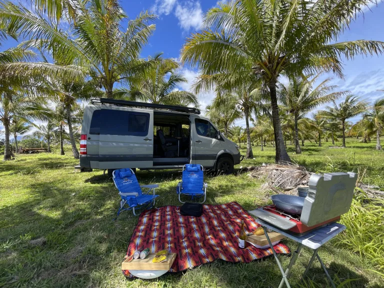 and conditioner not included) RecomendacionesAll camping reservations can be pre-booked for your time on Kauai. This link will get you started if you want to book a spot https://www.kauai.gov/campingNote: Sleeping in a vehicle in Hawaii is illegal but its not abnormal. Being kind, respectfully and embracing aloha can go a long way in Kauai so, please keep that in mind as you explore. If you choose to sleep in the van in a public area you run the risk of being asked to leave and/or getting fined. Any and all fines associated with sleeping in the vehicle are your responsibility.Otros detalles importantesOutdoors Rentals are not allowed to pick up at Lihue Airport (LIH):Pick up and drop off is behind Target at 4303 Nawiliwili Rd Lihue, HI 96766 which is 6 mins from the airport. You will need to arrange a taxi or Uber to get to pick up location. Reach out for additional pick up / drop off options which can be made on a case by case basis.***Important Notes (Please read carefully)***Please show aloha and respect our van, as we put a lot of time, effort and