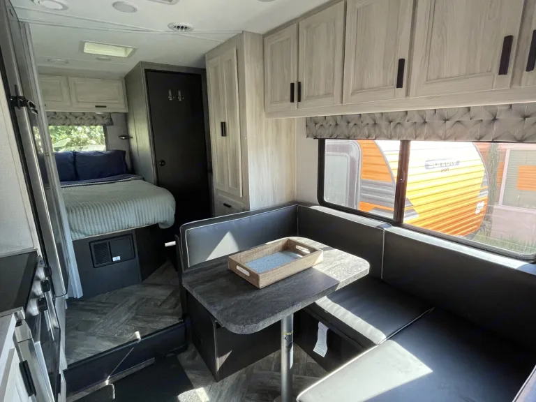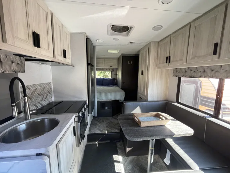 - **Easy Driving:** At just 24 feet long, it’s a breeze to handle and can almost fit in a regular parking spot.- **Sleeps 6 Comfortably:** Two cozy queen beds (one with a plush mattress topper) and a convertible dinette make it perfect for families or groups.- **Modern Features:** Enjoy a horseshoe dinette, light countertops, a large sink, and a spacious fridge that runs entirely on battery.- **Off-Grid Ready:** Solar panel included! Stay off the grid for a few days with ease—just bring enough water.- **Storage Galore:** Plenty of room for all your gear, both inside and out.**Extras to Make Your Trip Amazing:**
