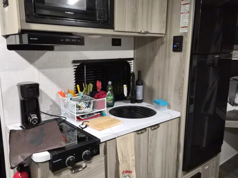 Small but mighty! Tow with you SUV and still have it all from entertainment space inside, beds for 6-8, and an outdoor kitchen you can have it all!Qué incluye• Kitchen essentials