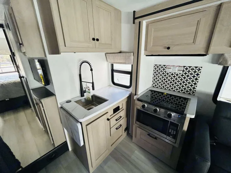 This Sunseeker LE Class C gas motorhome offers you quite a bit of sleeping space with its RV queen bed, kid's sofa sleeper, flip-down bunk, booth dinette, sofa, and 60" x 80" bunk over the cab. There are also two slides on this coach so that you can have more space for all of those travelers, and the great kitchen amenities, like the recessed three-burner range and convection microwave, will make it easy to feed all of those people. You will also have a full bathroom for everyone to use when they need to clean up, and the shower skylight will add some brightness to the bathroom. Head outside for an evening together underneath the 11' electric awning with LED lights.