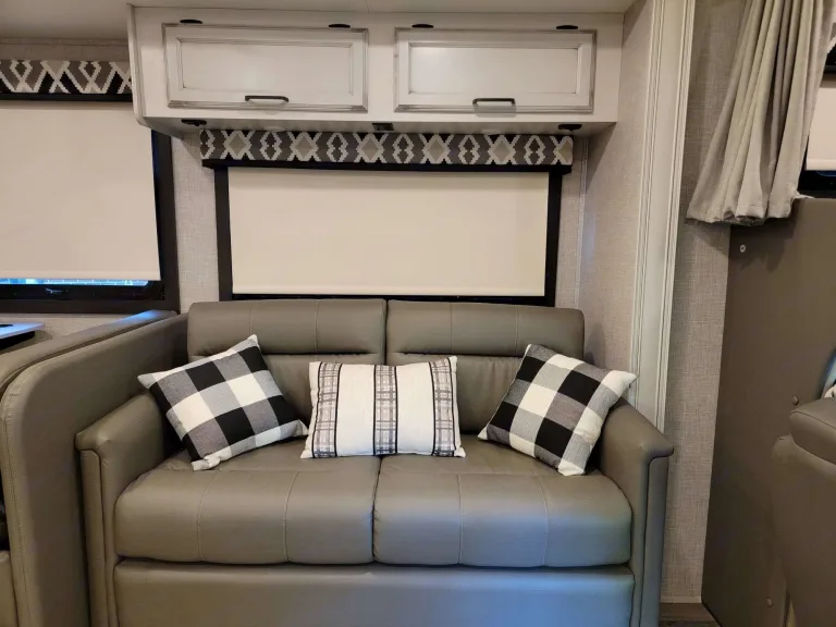 The 2022 Greyhawk 29MV is a top-of-the-line Class C motorhome designed to provide unparalleled comfort and versatility for adventurers and travelers alike. Boasting a sleek and modern exterior, this RV catches the eye with its dynamic profile and refined detailing.Stepping inside, you're greeted by a spacious and well-appointed interior. The layout is carefully crafted to maximize functionality without sacrificing style. Plush furnishings and high-quality materials create an inviting atmosphere, perfect for relaxing after a long day on the road.The 29MV's living area is intelligently designed, featuring ample seating options for both lounging and dining. Whether you're enjoying a meal with family or unwinding with a movie, there's plenty of space to spread out and make yourself at home.The kitchen is a chef's dream, equipped with state-of-the-art appliances and ample counter space for meal preparation. From gourmet dinners to quick snacks, cooking on the road has never been easier or more enjoyable.When it's time to rest, the 29MV doesn't disappoint. The master bedroom offers a tranquil retreat, complete with a comfortable queen-sized bed and plenty of storage for all your belongings. Plus, with additional sleeping options including a convertible sofa and overhead bunk, there's room for the whole family to get a good night's sleep.